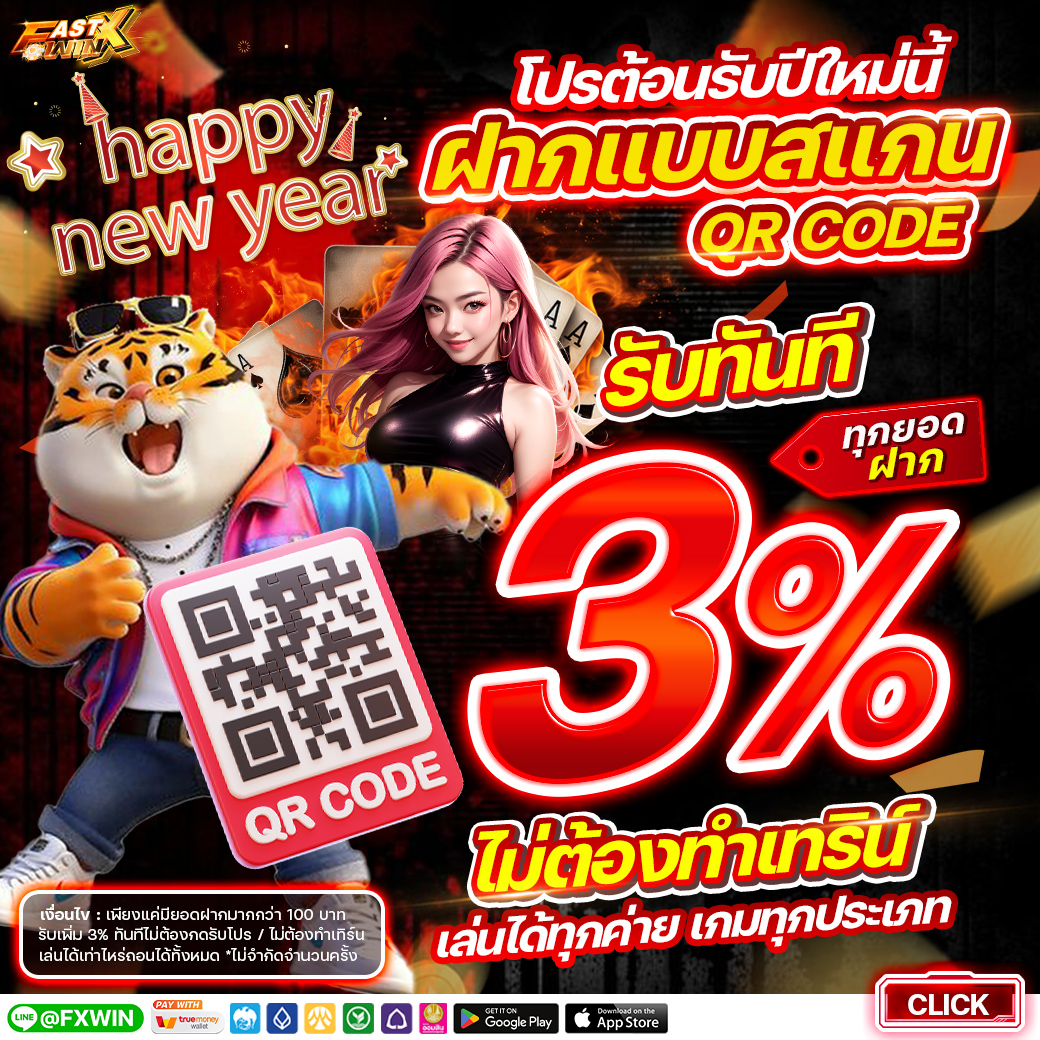 🎉Happy new year โปรฝากรับเพิ่ม 3% ทุกยอดฝาก (ฝากแบบสแกน QR CODE)